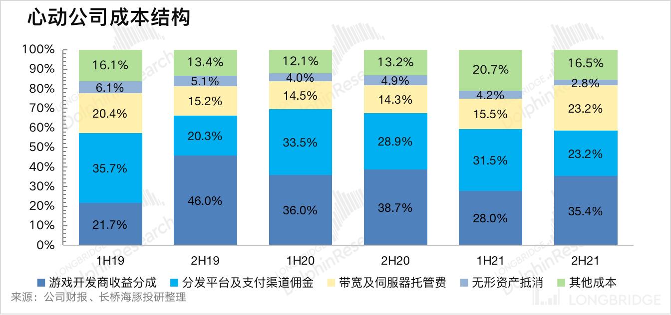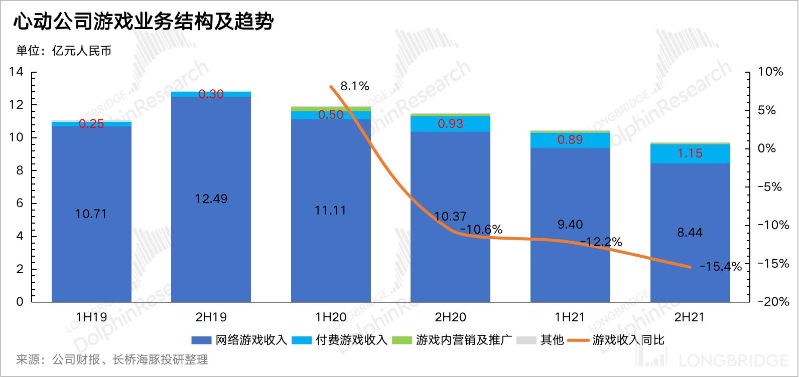 展望 2022 年,海豚君预计由于版号限制了心动多款自研游戏上线计划,短期公司应该不太会继续扩张团队了,由于都是高固定薪酬为主,预计研发费用绝对值上变化也不会大。因此要想看到利润端的反转,需要依赖收入扩张或游戏业务结构变化带来的毛利端改善,但无论是哪一种,都依赖版号的解冻。