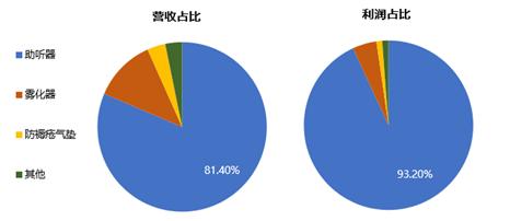 从收入结构来看,锦好医疗的主营产品包括了助听器、雾化器和防褥疮气垫等。其中,助听器贡献了超过8成的营收和利润,是公司最直接的业绩动能。