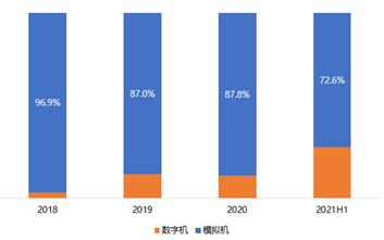 图三:2018-2021H1数字机&模拟机的销售占比情况 公司招股书、36氪整理