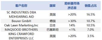 在锦好医疗的境外销售中,美国、日本、欧洲是主要的市场。从客户情况来看,美国、德国客户的合计占比超过了30%,然而,美德市场的助听器渗透率均超过了20%,增长空间并不大。