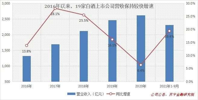 在消费升级的驱动下,2016年以来,高端次高端白酒迎来了快速增长期。以19家上市白酒公司为例,2016-2020年营收复合增速达到18.7%,利润复合增速则高达25.85%。