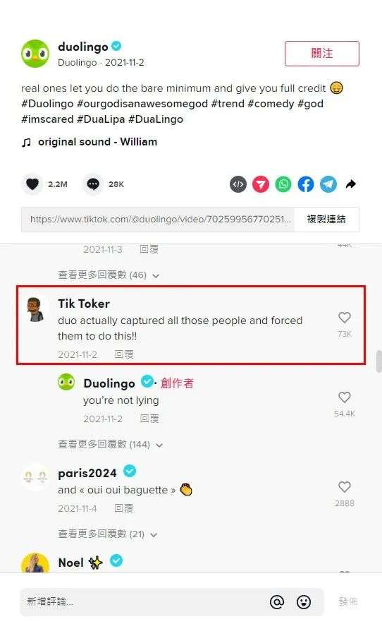 事实上,@duolingo 更强调在TikTok 娱乐而不是销售。