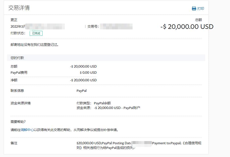 不过,Paypal方面对此回复称:“2007年《用户协议》中就有相关2500美金处罚的规定。”