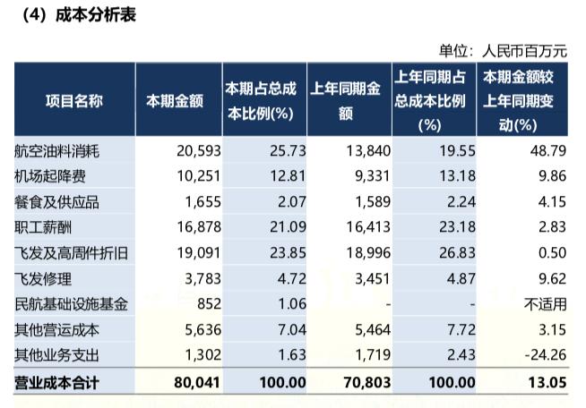 ▲中国东航的成本分析表,来源:中国东航2021年报