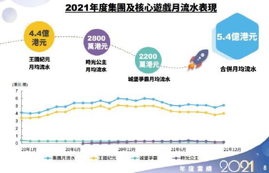 每一家成功出海的厂商手里都有几款非常能打的核心产品,对IGG而言这款产品就是于2016年投入市场的《王国纪元》。游戏在上线6年之后依然非常能打,迄今累计注册用户达到4.9亿(其中2019年新增9000万,2020年新增1亿)。2021年游戏平均月活保持在1200万以上,月均流水超过4.4亿港元,总收入为50.2亿港元,为IGG贡献了全年总营收的83%。