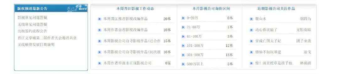 一本好的网文,影视签约版权或达上百万。在晋江文学城界面上,收藏量破60万的《告白》,破10万的《白桃乌龙》,破3万的《从善》等作品均为百万签约作品,都市青春、古装仙侠等题材都有涉及。
