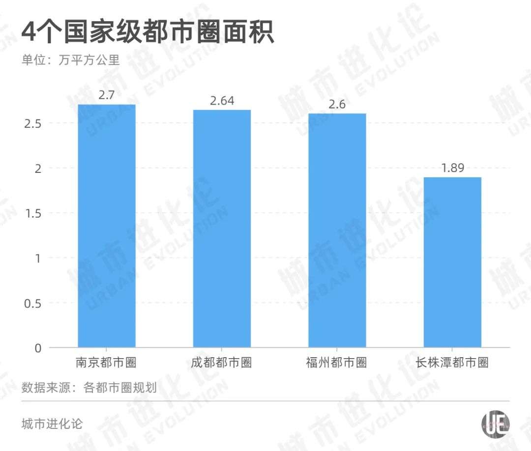 当然,长株潭都市圈腹地较小也是不可忽视的因素,不仅没有武汉城市圈“1+8”的顶级配置,就连都市圈面积也远远小于南京都市圈(2.7万平方公里)、福州都市圈(2.6万平方公里)、成都都市圈(2.64万平方公里),仅为1.89万平方公里。