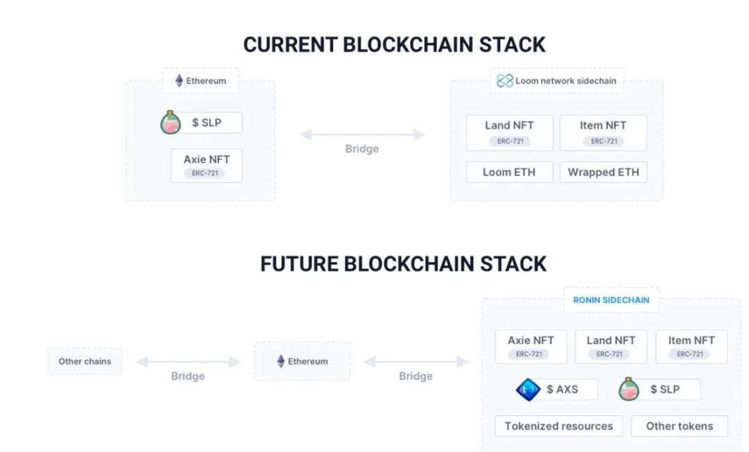 就像前文所说,Axie Infinity是一款基于区块链的游戏,所以,无论时Axie这些NFT还是SLP和AXS这些资产,其实都是存在于链上的。而此次遭受攻击的地方,就是在用以架接Axie游戏资产和以太坊的Ronin跨链桥上。