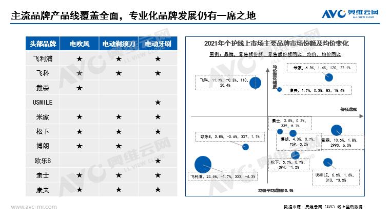 而素士在2021年的个护市场零售额份额仅为2.5%,远低于头部的飞利浦、飞科和戴森,而与USMILE等网红品牌相比亦是不及。