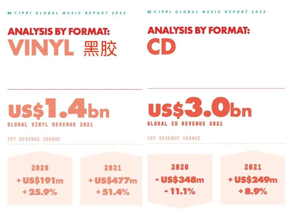 国际唱片业协会IFPI发布的《全球音乐报告2022》显示,2021年,全球CD销售收入增长了8.9%,二十一年来首次出现增长。
