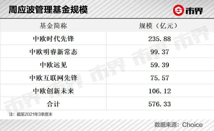 优秀的业绩使得周应波成为市场中炙手可热的基金经理之一。截至2021年三季度末,周应波在管基金规模达到576亿元,成为中欧基金为数不多的流量担当。