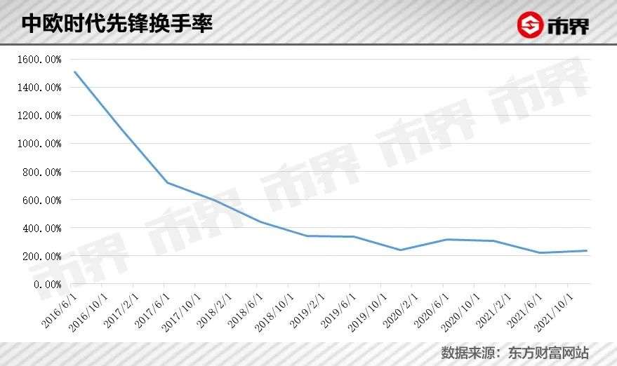 东方财富数据显示,2016年中、2016年末、2017年中、2017年末,中欧时代先锋的换手率分别为1508.58%、1104.63%、719.46%、596.25%,远超同类平均水准。直到2019年后,周应波的换手率才低于同类平均水平。