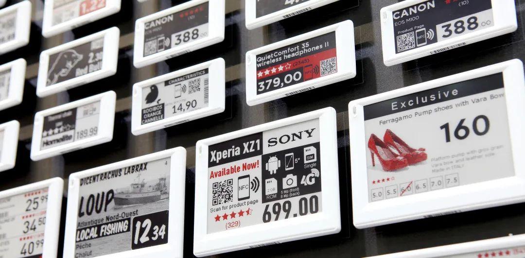 墨水屏的低功耗特性可以在零售、交通、工业、医疗等领域广泛应用。在零售行业,墨水屏应用的场景在3C科技产品、超市、药房和居家装饰等的电子货架标签上。对于商家来说,商品的数量与活动越来越丰富,手动更换价签的成本较大,并且纸质的价签并不环保,使用墨水屏的电子货架标签可以远程操作,更改定价信息,并且对于配合丰富的市场宣传活动来说,也更加灵活。