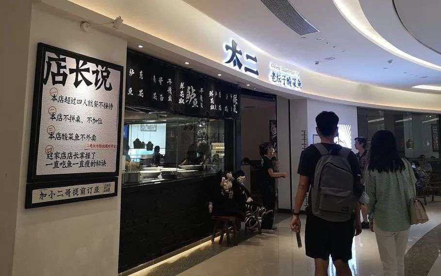 2015年,在餐饮行业普遍遭遇经营瓶颈之际,九毛九将目光瞄向酸菜鱼,推出了“太二”这个酸菜鱼品牌 ,客单价在70-90元,主打“酸菜比鱼好吃”,在不被市场看好的情况下硬是杀出了一条血路。