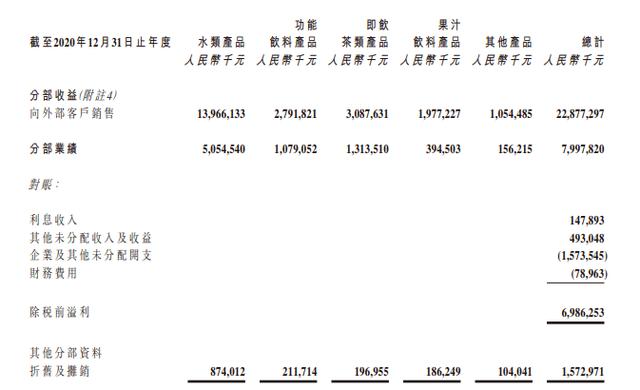 占总收益8.7%的果汁饮料产品,2020年全年收益为19.77亿元,较2019年下降14.5%;