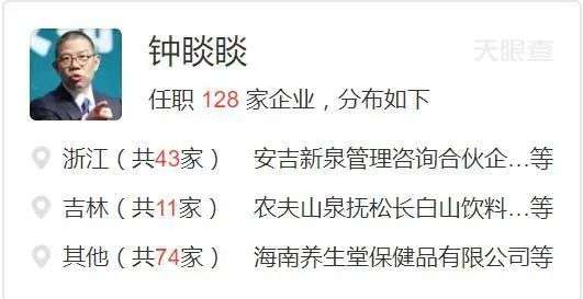 如果你以为钟睒睒只有农夫山泉一头“现金奶牛”,那就大错特错了,据天眼查消息,钟睒睒目前担任高层以上职务的关联公司,就有128家之多,我们经过快速复盘,发现,这其中,表现就亮眼的,当属A股神兽——大名鼎鼎的万泰生物了。