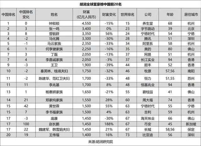 2022年福布斯富豪榜显示钟睒睒凭4550亿人民币财富拿下中国首富,据福布斯实时富豪榜的数据,目前钟睒睒身家626亿美元(约合3970亿人民币),全球排名第18,相比上年,下滑了足足11个名次。