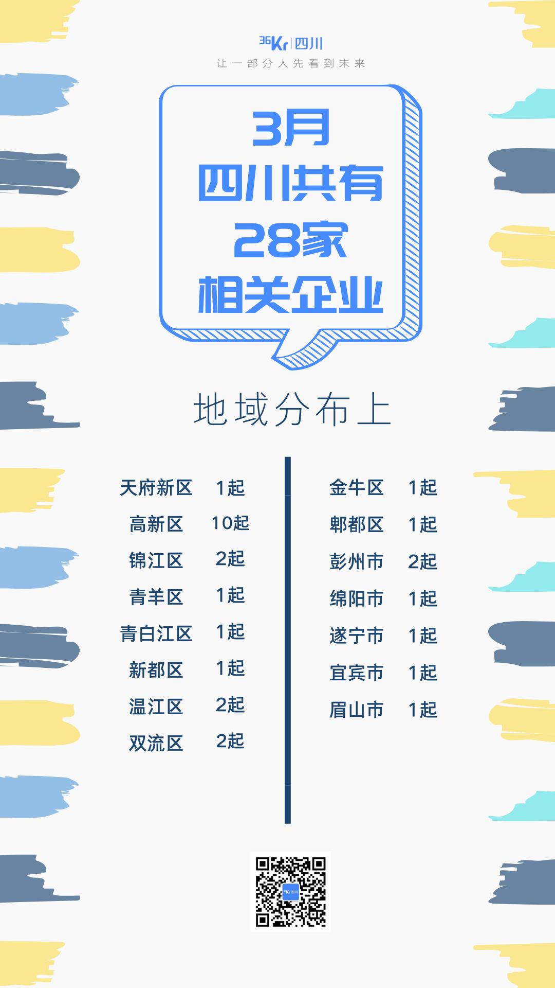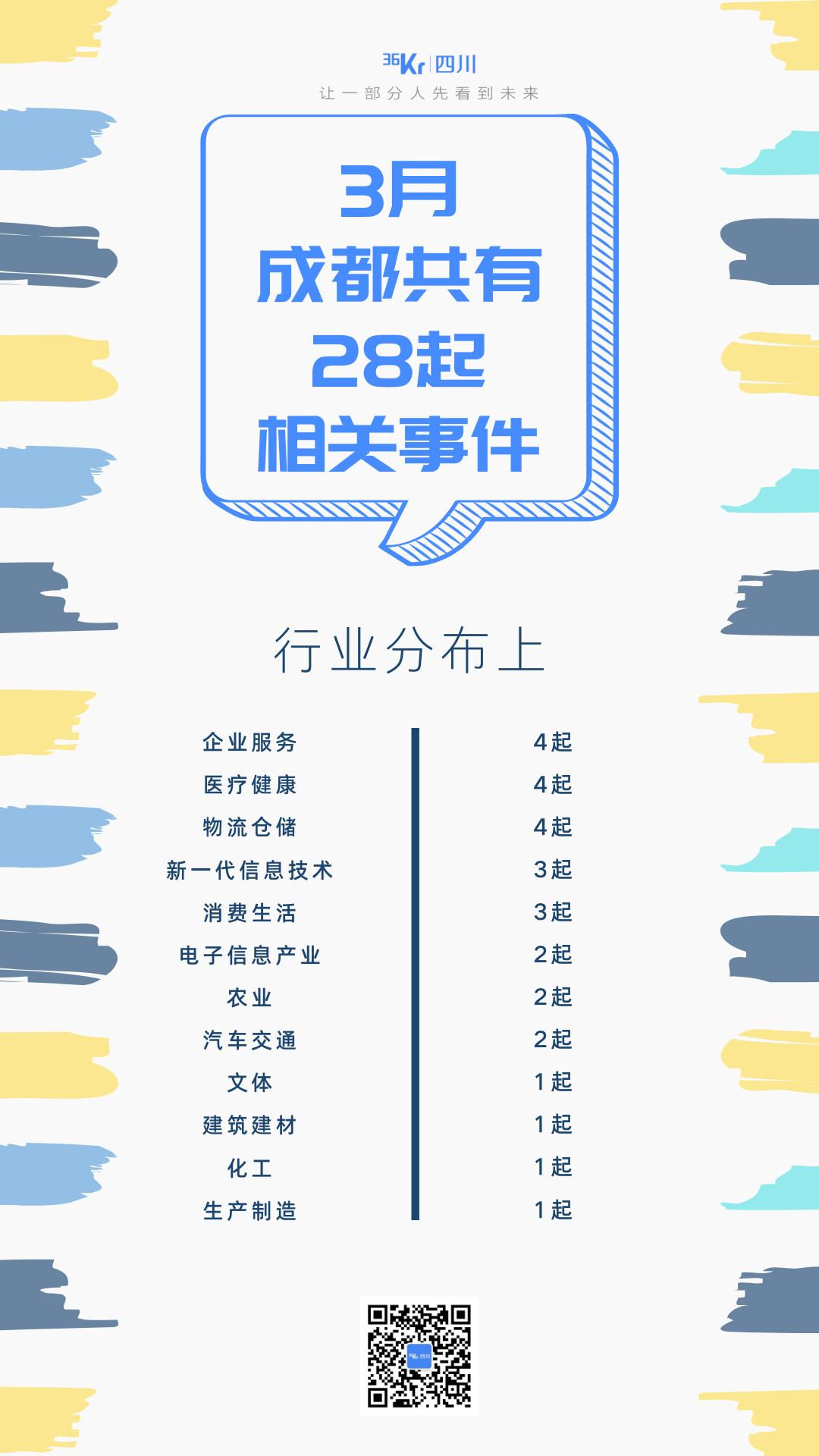 3月,36Kr四川通过公开渠道,共收录与成都相关的融资事件28起。其中:获得投融资方面,Pre-A轮2个,A轮8个,B轮3个,C轮1个,种子轮4个,天使轮4个,战略投资2个,IPO上市2个,上市后2个。