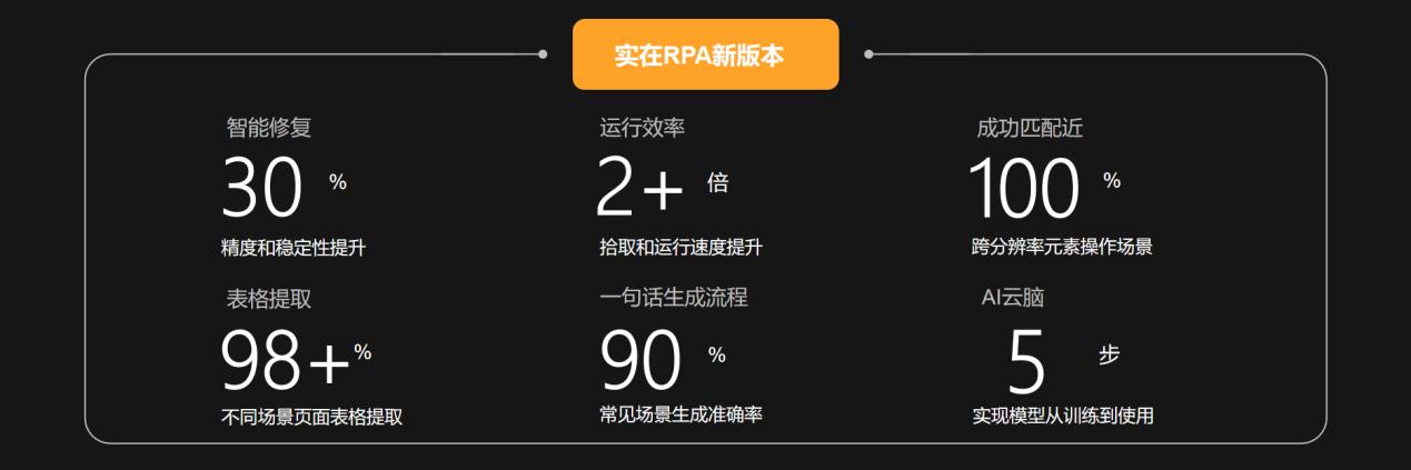 实在智能算法专家欧阳小刚表示,全新的融合拾取2.0技术在拾取精度和稳定性上实现了30%的提升,同时还带来2倍以上的运行速度提升。更有“更高精度像素级的元素定位、媲美原生拾取速度的运行效率提升、能够自适应各种分辨率的精准匹配”等亮点功能,为RPA使用者带来更极致的界面操控体验。