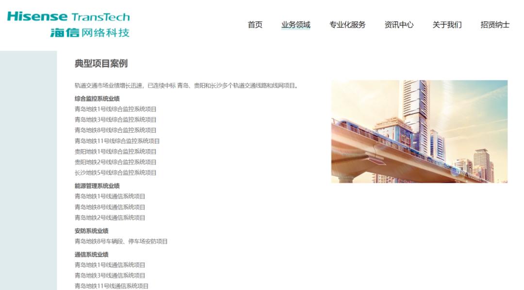 海信的轨道交通案例,“大本营”青岛占了多数