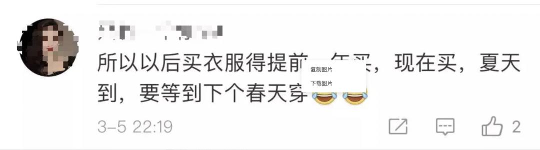 对此,有网友建议道,提前买春装,现在买,夏天到,等到下个春天再穿。