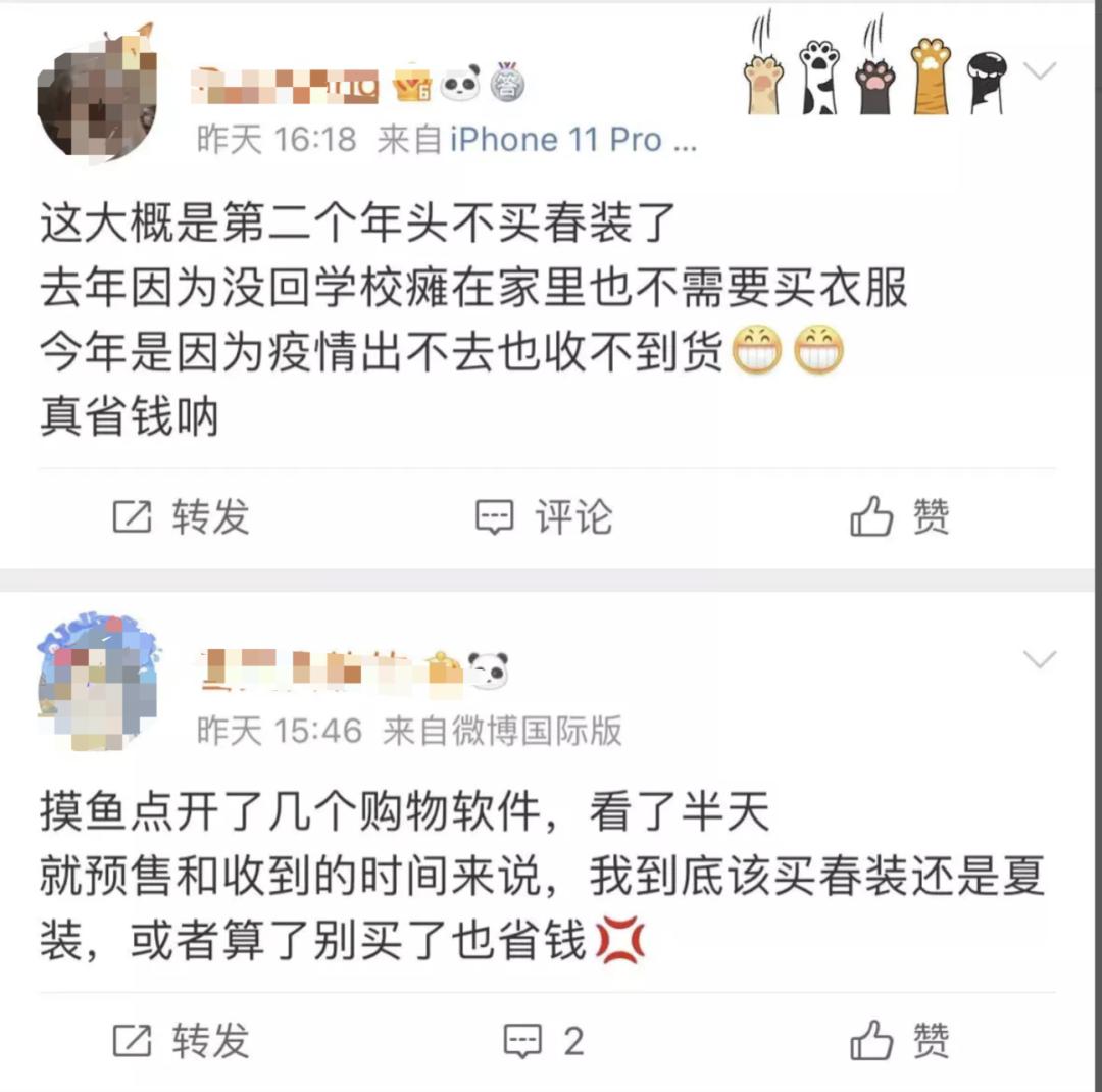 这个春季,有姐妹被困在疫情里,失去了出门自由;有人被困在预售里,2月份购入的女装,4月才发货;也有人所在地区不能收货,选择翻出去年的春装。