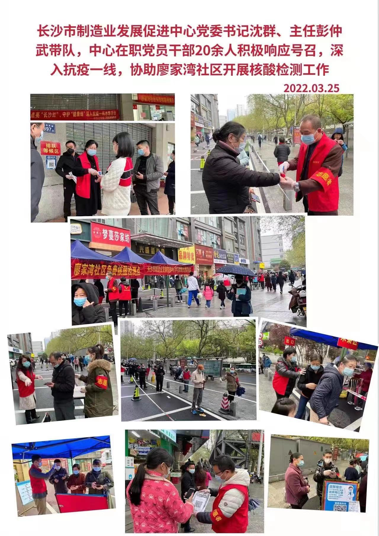 3月26日,市工信局局属单位长沙市制造业发展促进中心的党员干部顶着寒风细雨,在休息日深入抗疫一线,协助廖家湾社区开展核酸检测工作。