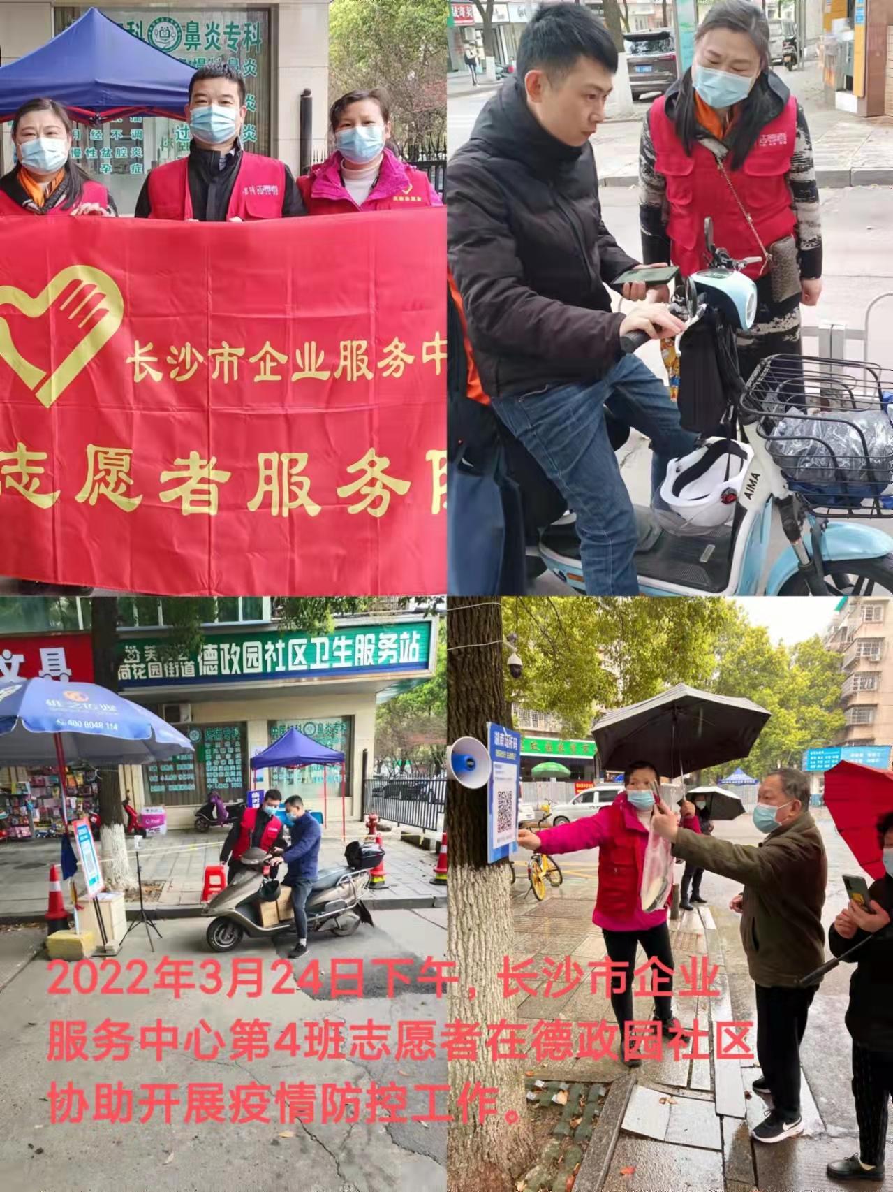 3月23日,市工信局局属单位长沙市企业服务中心志愿者在德政园社区协助疫情防控工作。