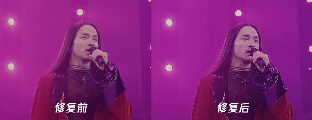 然后,演唱会现场环境较复杂、多变,且场景较暗,细节也不够丰富,还面临运动场景、景深切换等较多等各种情况,对算法带来更大的要求和挑战。修复中,需要运用多种修复手段,并依据不同的场景,不断尝试适合的算法,提升效果,为以后的修复积累了宝贵的经验。