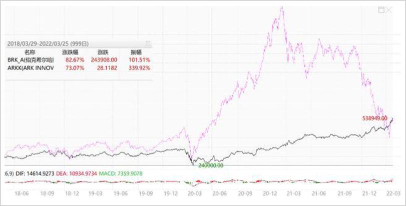 像木头姐这样相对年轻的投资者,往往都青睐改变世界的公司,而看尽风云变幻的巴菲特,更青睐的则是不容易被世界改变的公司,不同的投资风格,决定了两人迥然不同的收益曲线。