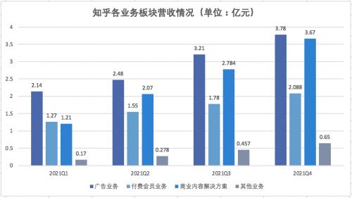 从财报可以看出,在“网文化”之外,知乎的内容还在快速“软文化”。2021年知乎非广告部分的收入占比达到61%,其中,商业内容解决方案的增幅高达617%。“商业内容解决方案”即KOL定制广告,知乎会为品牌对接创作者,然后根据标签将内容精准分发给用户。