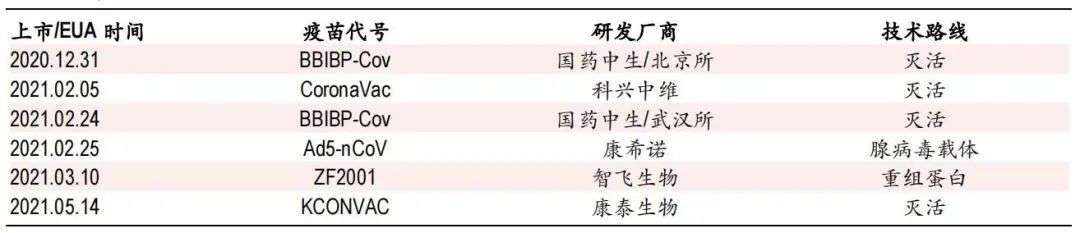 中国已批准的新冠疫苗产品 图片来源:中银证券