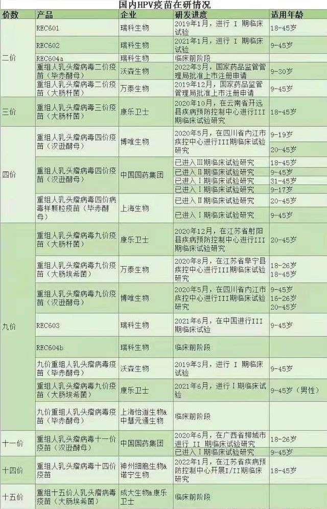 公开信息显示,目前九价HPV疫苗已经做到III期临床试验阶段的,有万泰、博唯、瑞科、康乐卫士这4家。“接下来就看谁能率先完成III期临床试验。因为一款疫苗的上市周期十分漫长。如果现在还没有做到III期试验的企业,那后面想取得市场的先机就十分困难了。”张智星介绍。