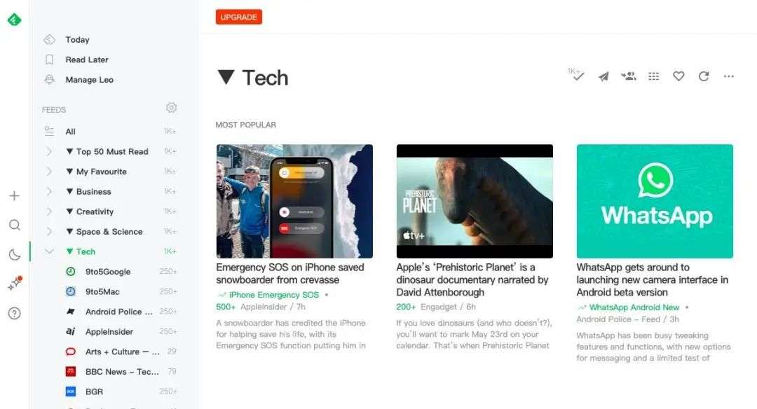 ▲目前较为活跃的 RSS 阅读器:Feedly