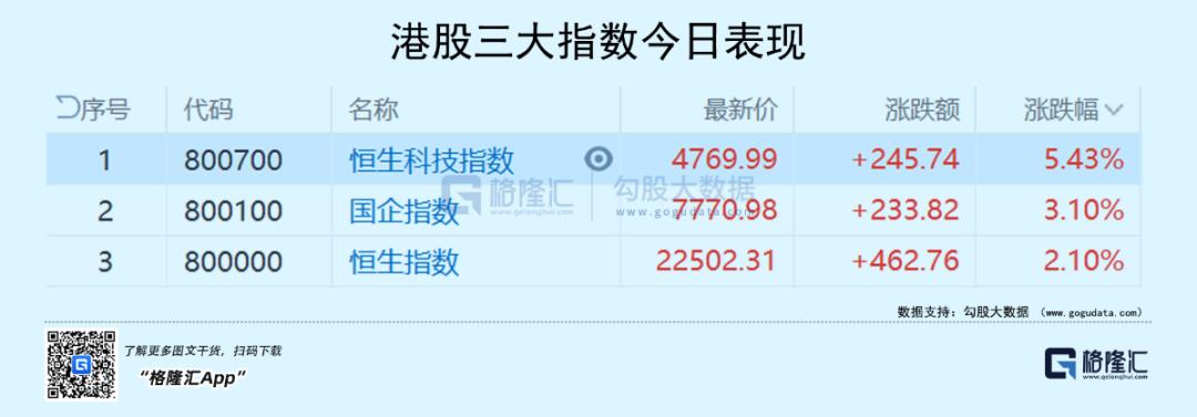 在周末一系列消息的刺激下,港股毫不犹疑地高开,并在震荡中不断上涨,最终恒指收涨2.1%,而扛起反弹大旗的还是以内地互联网公司为主的恒生科技指数涨超5.43%,重新维护了底部右侧的尊严。