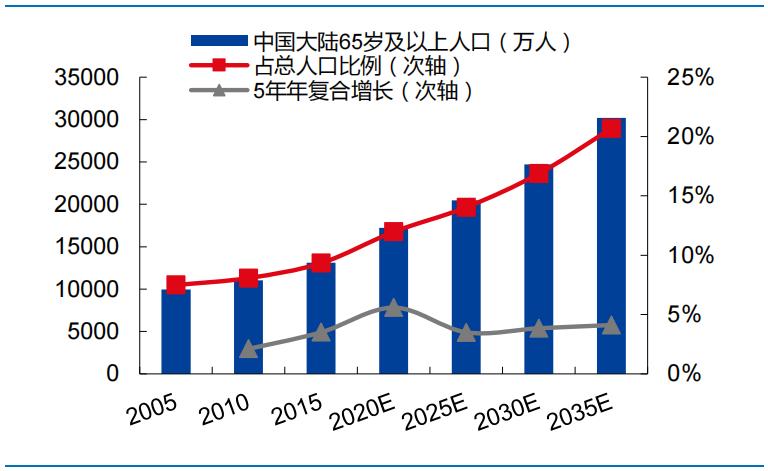 (中国大陆 65 岁以上人口及占比 来源:华金证券)