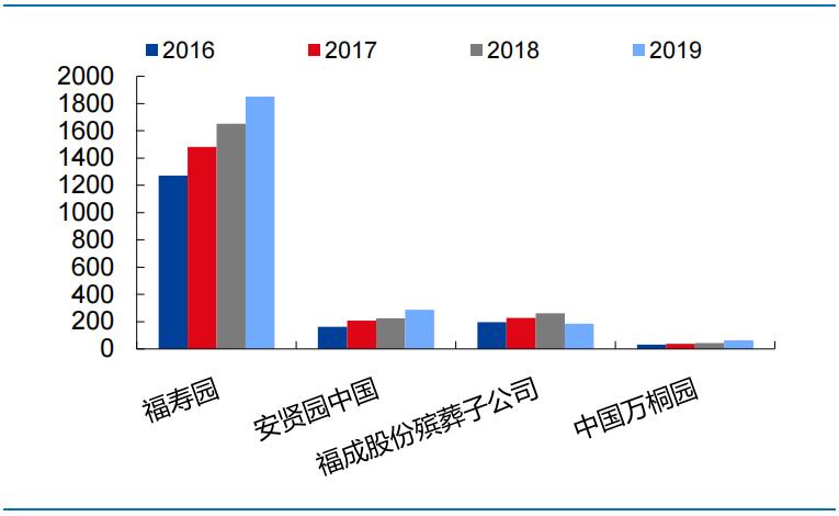 赚钱的生意,若不是政府钦点,享受独特的行政性垄断地位,必定会出现抢生意的竞争对手,殡葬行业正是这样,迎来越来越多的竞争者,而且还不乏上市公司,例如福成股份、安贤园、万桐园,业务模式类似,盈利能力也相差不大,不同的是起家省份,以及各自所占据的山头,按体量算,福寿园领先于其他三个,其他三个则相差不大。