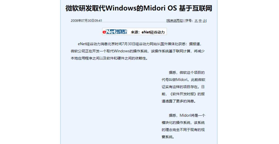 有趣的是,对海外互联网大厂而言,研发模块化设计的自研系统似乎并不罕见。早在谷歌之前,微软就曾经做过一次模块化系统方面的全新尝试:Midori OS项目。该系统基于云计算服务,主打功能是“独立于软件的进程”,目标是显著减少本地应用软件之间,以及软件和硬件平台之间的依存度,以此提高应用软件的兼容性。
