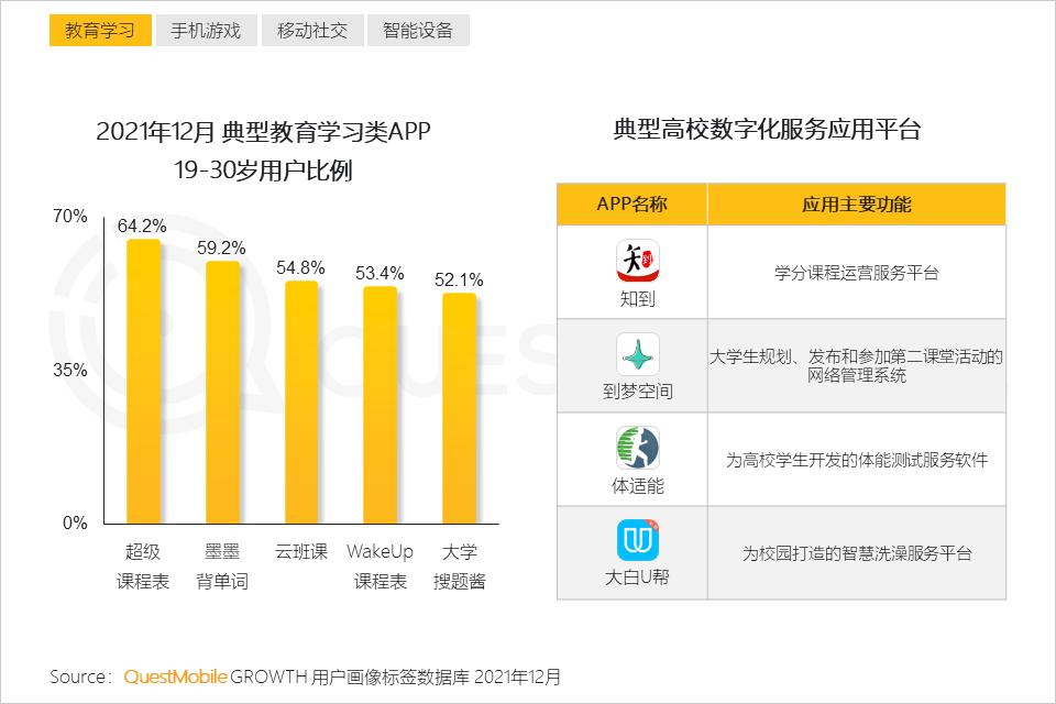 4、其中高校学生选择自由度较高,应用需求类型更广,各大高校也在对应积极推进校园的数字化发展