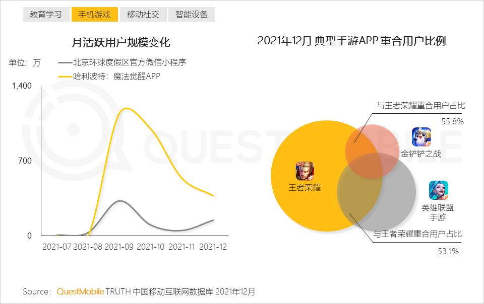 7、哈利波特IP带动相关产品大受追捧,手游流量呈现爆炸式增长,英雄联盟手游和金铲铲之战作为腾讯新出力作,流量也得到大幅度提升