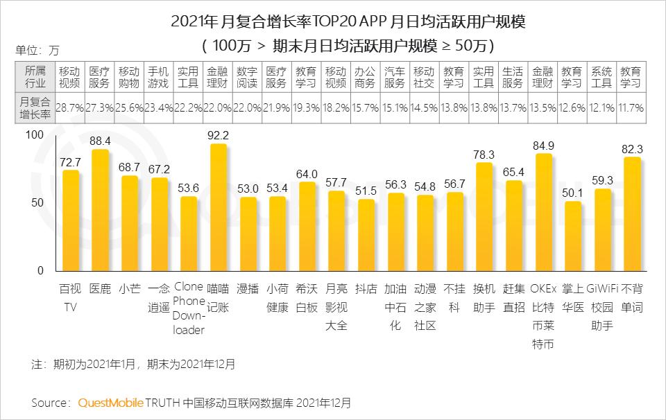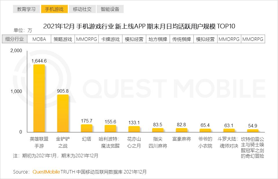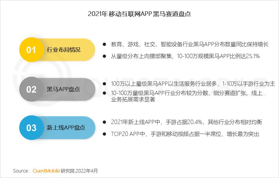 2021 年移动互联网黑马盘点报告:行业日趋复杂,黑马APP主要集中在手机游戏,教育学习,生活服务行业