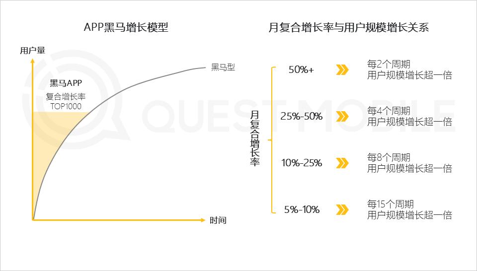 “黑马型”应用是同时期内增长最突出的应用,虽然整体用户规模相对偏小,但能够充分反映当季移动互联网行业的市场动态。