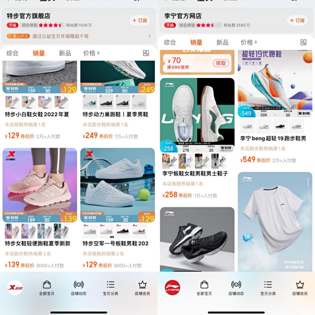 安踏和李宁淘宝旗舰店热销产品对比 去消费制图