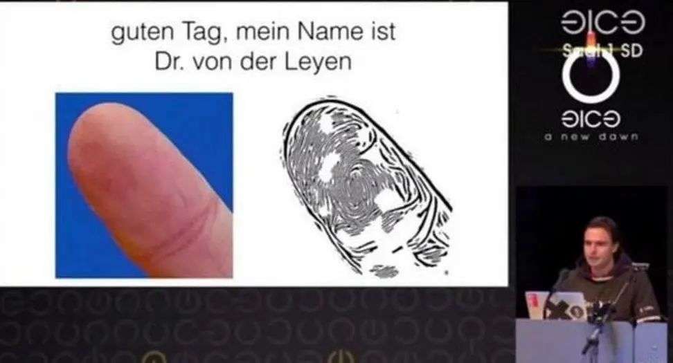 2014 年,在欧洲 Chaos 计算机俱乐部年度会议上,黑客 Starbug 展示了他利用时任德国国防部长的乌尔苏拉·冯德莱恩的照片来伪造指纹的方法,以此证明当时指纹技术的潜在风险。