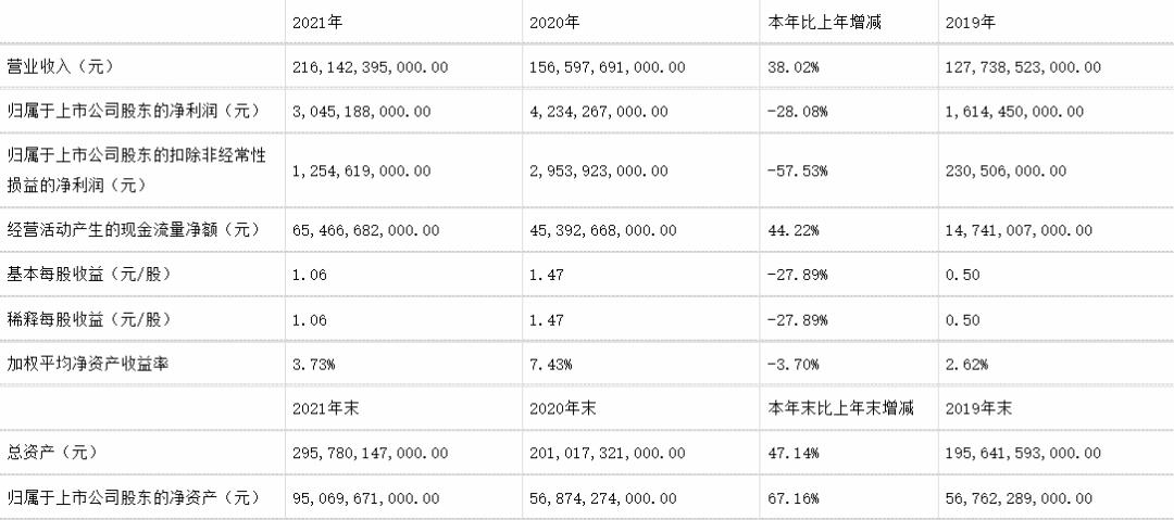 与营收的增长相比,净利润的表现却与之形成了明显的反差。据财报数据显示,去年比亚迪录得归属母公司股东净利润为30.45亿元,相较于2020年同比下降了28.08%。