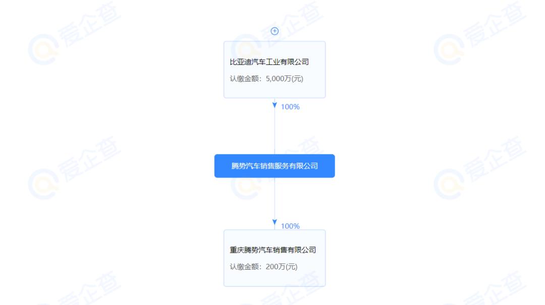 腾势汽车销售服务有限公司股权穿透情况, 截图自爱企查