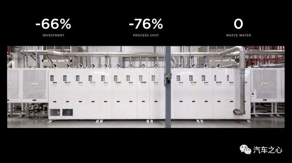 特斯拉的工程主管 Drew Baglino 曾通俗地描述过这一问题:制造阴极时,需要金属硫酸盐加入化学品,并注入水,发生一系列反应之后,最后得到的是少量阴极,但更多的是废水和副产品,效益不高。