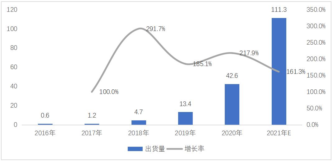 华美兴泰创始人兼CEO杨昌军对36氪表示,“目前家庭及户外储能是比较热门的赛道,只有那些掌握全线核心技术并具备完善产业链的公司,才有可能在竞争中胜出并成长为行业领导者。”据中国化学与物理电源行业协会发布的《中国便携式储能行业发展研究报告(2021年)》统计,2016年,全球便携式储能设备仅出货5.2万台,预计2021年出货量将达到483.8万台,年复合增长率达到148%。