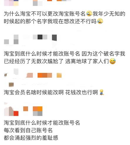 淘宝账号存在感仍然很强,不仅在用户“自我面对”时,“社死”案例也俯拾皆是。比如有网友称曾在男友面前,被快递站阿姨喊到“刘昊然老婆”。也有用户称每次进直播间,被主播喊账号名都感到很羞耻。还有商家以“欣赏”买家的账号名为乐,称见过很多好玩的名字。