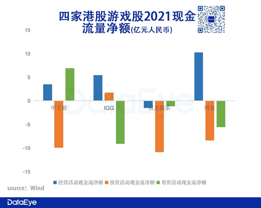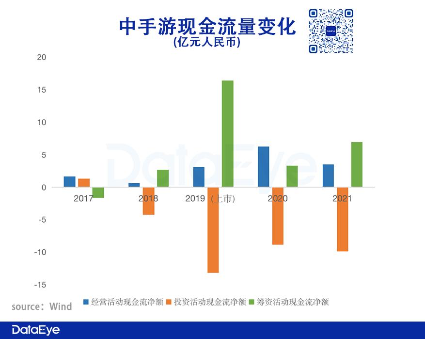 IP价值逐步释放,仍大手笔投资IP。2021年,中手游投资活动现金流净额近-10个亿,约是筹资活动现金流净额、经营活动现金流净额的总和——赚来、筹来的钱都投了出去。回顾2020、2019,投资活动现金流净额都处于较高水平。